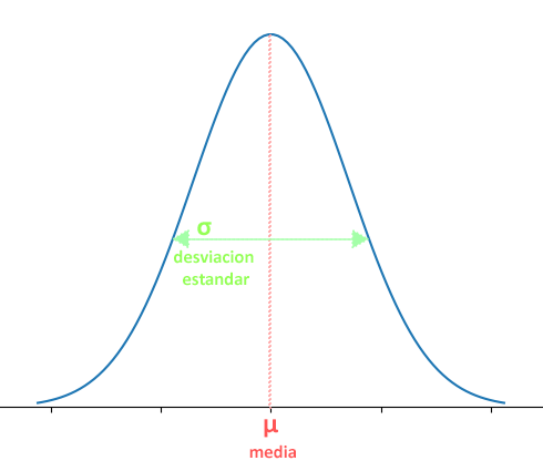 Donde miu y sigma son la media y desviación típica respectivamente y su representación gráfica es la siguiente.