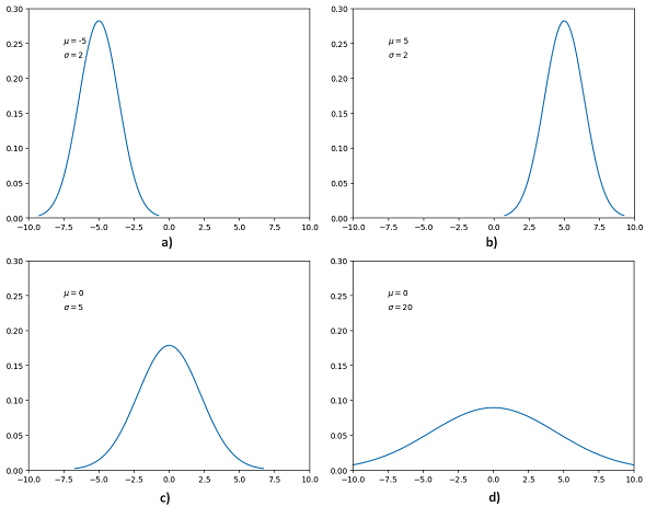 Fig. 2 representación gráfica de la distribución normal con diferentes valores de media y desviación típica