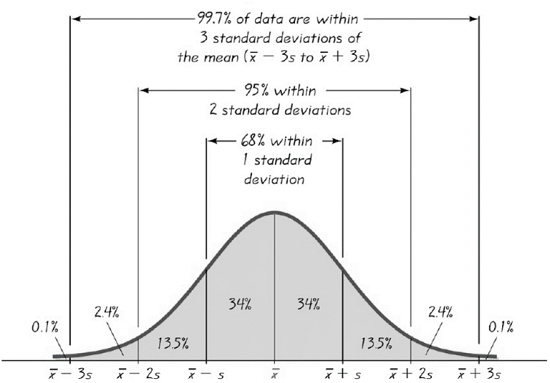 Estos rangos pueden ser identificados fácilmente por medio del uso de la desviación estándar, por ejemplo para el caso de la estatura la siguiente gráfica ilustra la distribución de las probabilidades en función de las desviaciones estándar de una distribución normal.