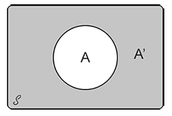 \[ \large 1 = P(S) = P(A \cup A^{'}) = P(A) + P(A^{'}) \] \[ \large P(A) = 1 - P(A^{'}) \]