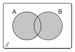 Obsérvese primero que AUB puede ser descompuesto en dos eventos excluyentes, A y B∩A'; la última es la parte B que queda fuera de A. Además, B por sí mismo es la unión de los dos eventos excluyentes A∩B y A'∩B, por lo tanto P(B) = P(A∩B) + P(A'∩B). Por lo tanto.