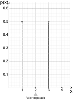 Para comprender el concepto de varianza, vamos a exponer dos ejemplos en donde el valor esperado es de 2, tal y como se muestra a continuación.