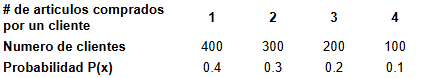 De la información registrada deseamos saber cual es el valor esperado del número de artículos que un cliente podría realizar en su compra; para ello aplicamos el concepto de valor esperado obteniendo lo siguiente.